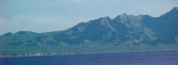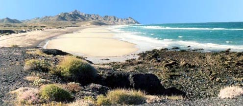 Location/Description: The area of San Lorenzo that is to receive protection from the SDCC in the near future is located on the coast of the Gulf of California directly south of the fishing village of Puerto Lobos. San Lorenzo is an oddly shaped 32,550ha (80,398acres) parcel of land, which encompasses the entire bay of Bahia de San Lorenzo (referred to as Bahia Tepoca on some maps) and the entire mountain range of Sierra Colorada. The SDCC is currently in the process of purchasing this area from the ejido (communal village) of Avila Camacho (see immediate goals). The mountains located in the area of San Lorenzo are varied in their substrate and origin. In vicinity of Puerto Lobos, on the northwest corner of San Lorenzo, are the remnants of a volcano, evidenced by a small, 180m (540ft), symmetrical peak of black basaltic rock, known as Cerro Prieto. Southeast of Cerro Prieto, starts the mountain range of Sierra Colorada which consists of granitic, basaltic, and marble substrates. The variety of rock substrates results in fascinating formations, such as arches and windows within the rocks. Towards the center of San Lorenzo, the Sierra Colorada reaches a maximum height of 727m (2175ft). This may not appear very tall, yet keep in mind that it is almost the altitude of Tucson, Arizona which in this case is reached adjacent to the Gulf of California. The result is an impressive topography of a step gradient, and it is amongst these mountains that one may find extant herds of desert bighorn sheep (Ovis canadensis nelsoni). |