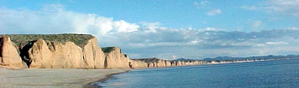 The intertidal invertebrate assemblages of this area are particularly unique in containing significant numbers of organisms that were once common at other sites, such as Puerto Penasco (e.g. the gastropod Onchidella hildae, and the echinoderms Echinaster tenuispina, and Heliaster kubiniji Mangin pers. comm.) The subtidal environment is characterized by a series of offshore patch reefs. These are not coral reefs, as the reef is not built by hermatypic corals, but instead is built by the honey comb tubeworm, Phragmatopoma californica. This sabellid tubeworm is found predominately in the intertidal of California, where it forms huge bands of a honey comb structure by cementing small sand particles (Ricketts and Calvin 1964). The disjunct population of P. californica, found in the southern end of Bahia San Lorenzo, is the only known occurrence of this species throughout the Gulf of California (Brusca pers. comm.). In this area, P. californica inhabits the subtidal, where the honey comb tube structures create massive reefs. The invertebrate and fish assemblages found on these reefs resemble those of true coral reefs, and in effect the Phragmatopoma reefs of San Lorenzo are structurally, and ecologically analogous to coral reefs. |